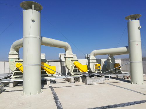 防腐風機采用耐酸堿的材質,低噪音,基礎采用減振裝置,基礎與廢氣凈化裝置采用軟連接形式。